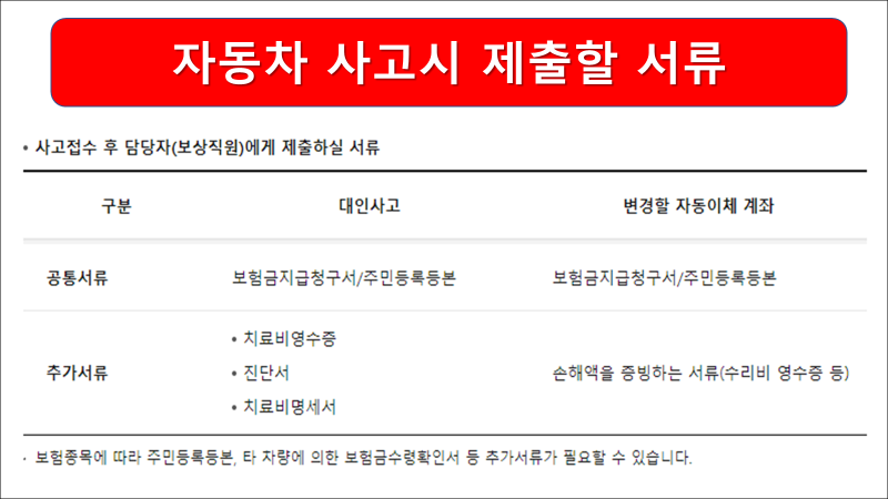 - 도난 및 전손사고의 경우 폐차증명서 또는 말소 사실증명서